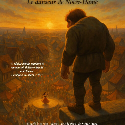 Comme chaque année il répète en secret " le grand moment " où il descendra à la Fête des Cloches pour participer au concours de danse... Il s'entraîne seul, en pensant à Esmeralda pour se donner du courage. Mais dans sa tête résonne la voix de Frollo son maître : "Tu es monstrueux... Tu n'es bon qu'à sonner les cloches... Reste en haut, en bas on se moquera de toi."